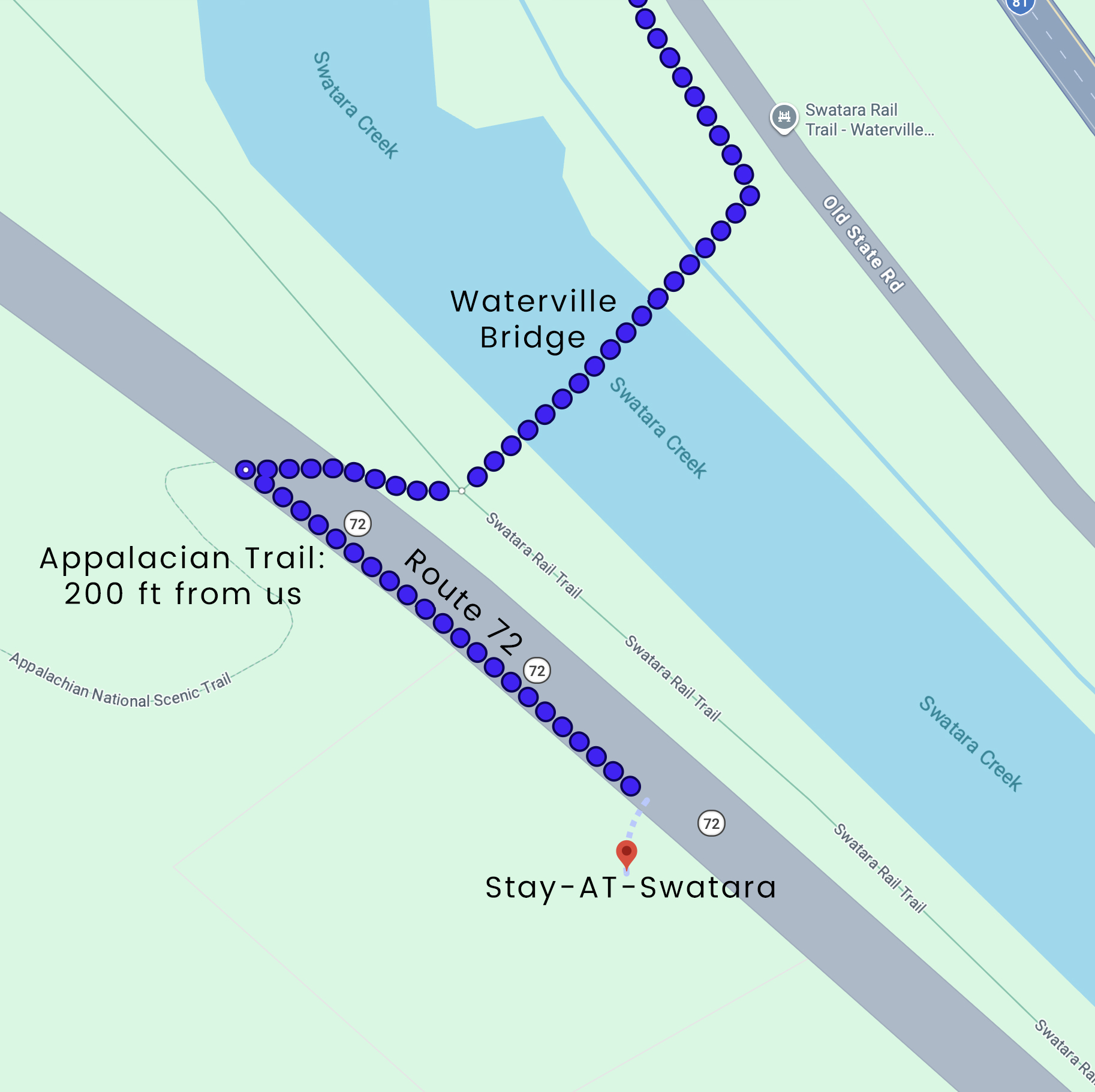 Stay-AT-Swatara is located just 200 feet from the Appalacian trail in Swatara Gap, PA at NOBO mile 1185.3, coordinates 40.4794572,-76.53167570